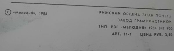 - Pressed By – Рижский Завод Грампластинок
