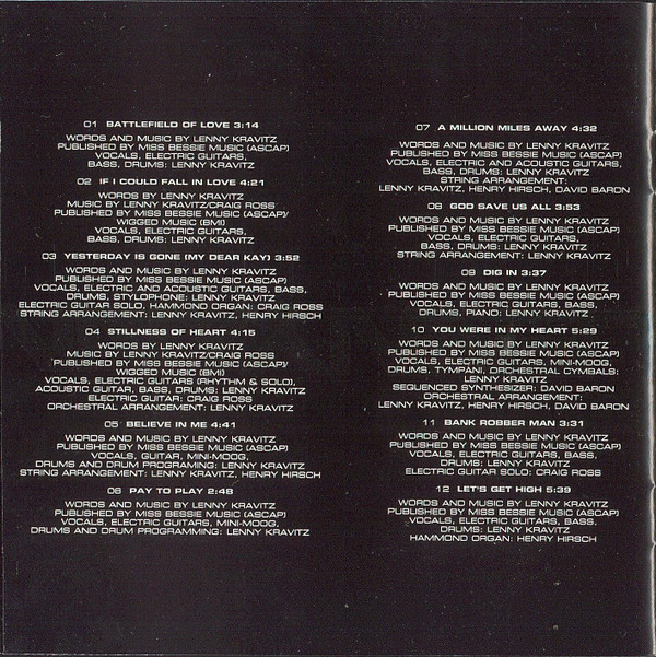 Electric Guitar – Craig Ross Electric Guitar [Electric Rhythm Guitar], Electric Guitar [Electric Guitar Solo], Soloist – Lenny Kravitz |