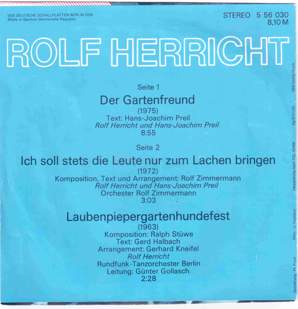 Rolf Herricht Rundfunk-Tanzorchester Berlin Arranged By – Gerhard Kneifel Composed By – Ralph Stüwe Leader – Günter Gollasch Lyrics By – Gerd Halbach |
