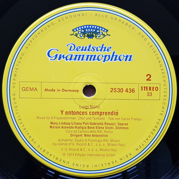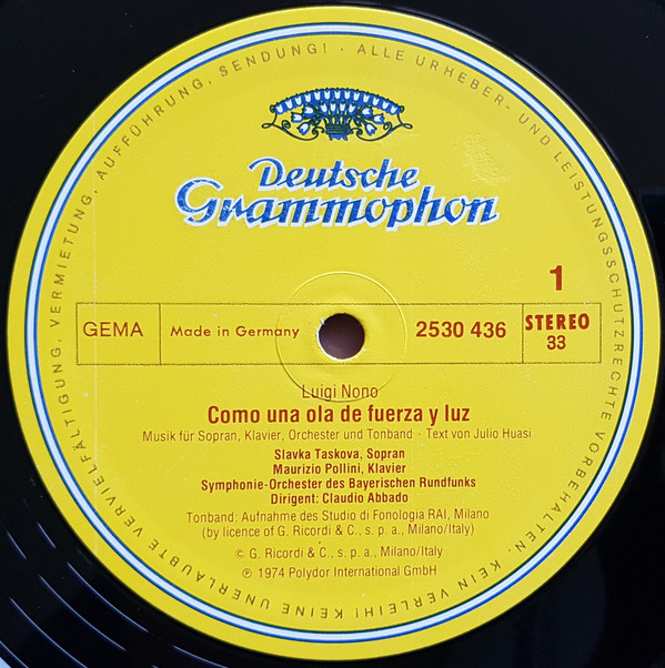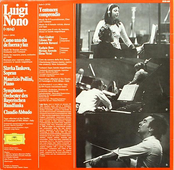- Composed By, Directed By [Tape Sound Direction], Sleeve Notes – Luigi Nono