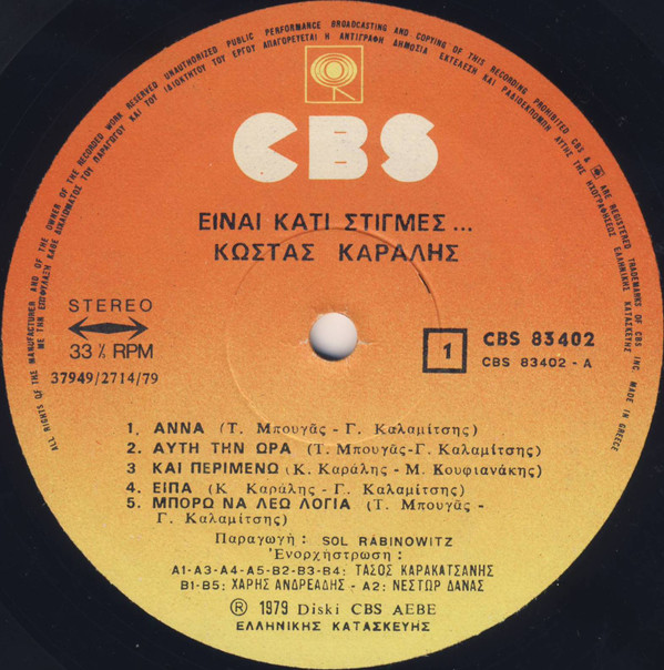 - Phonographic Copyright (p) – Diski CBS AEBE