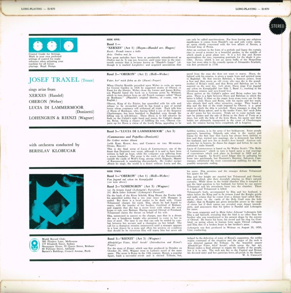 - Tenor Vocals – Josef Traxel