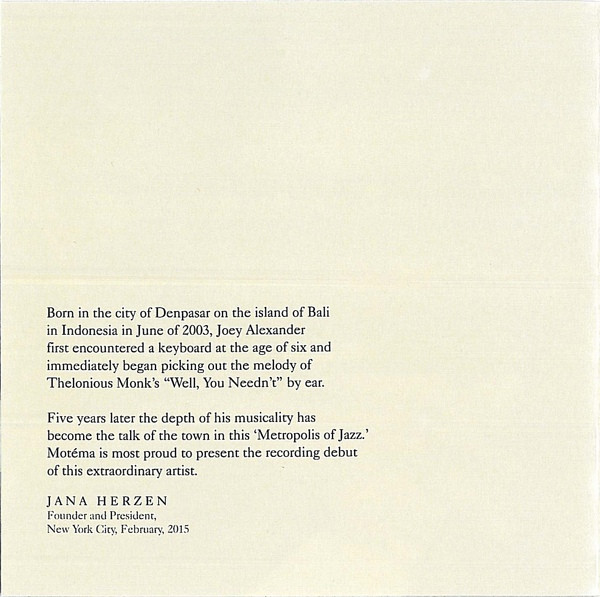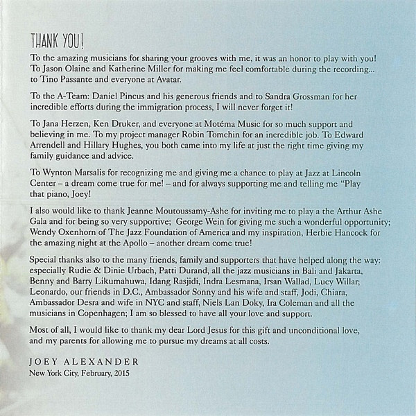 - Piano, Arranged By – Joey Alexander