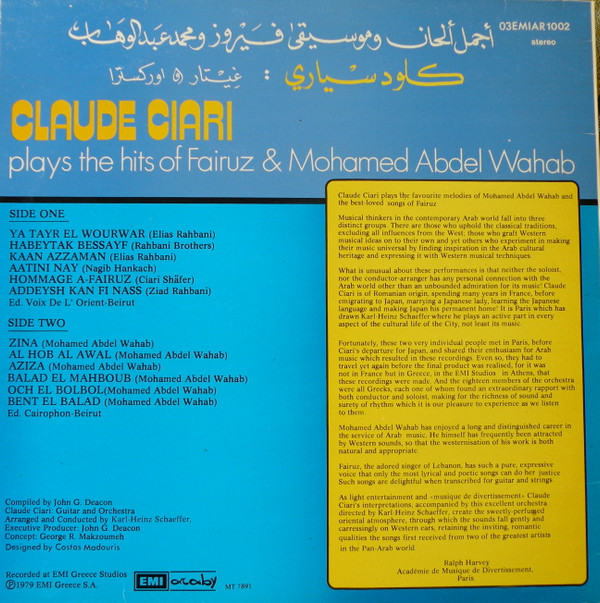 Claude Ciari – أجمل ألحان فيروز ومحمد عبد الوهاب = Plays The Hits Of Fairuz & Mohamed Abdel Wahab