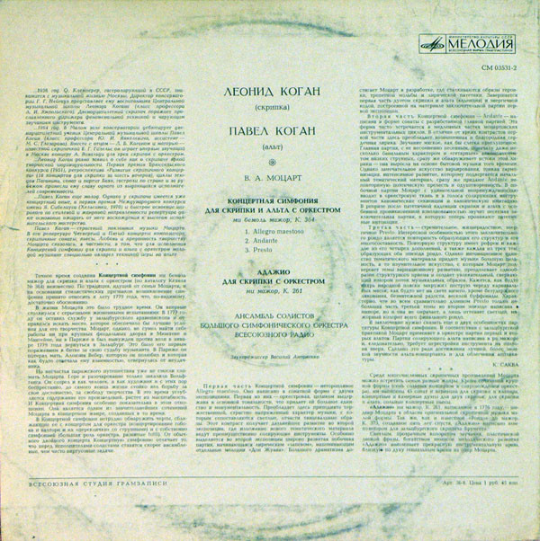 Лейбл: Мелодия – СМ 03531-2