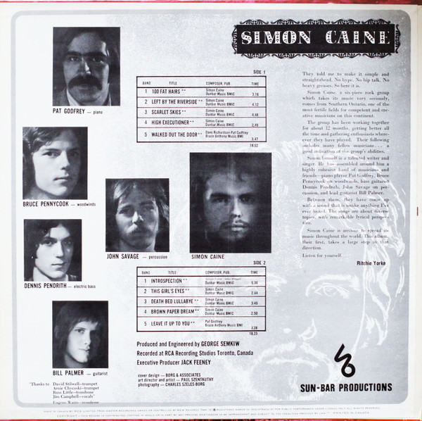 - Recorded At – RCA Studios, Toronto