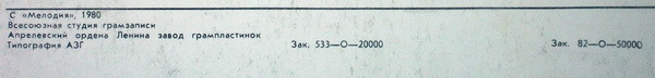 - Pressed By – Апрелевский Завод Грампластинок