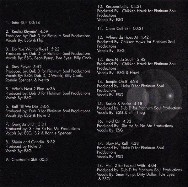 - Vocals – E.S.G. (2)