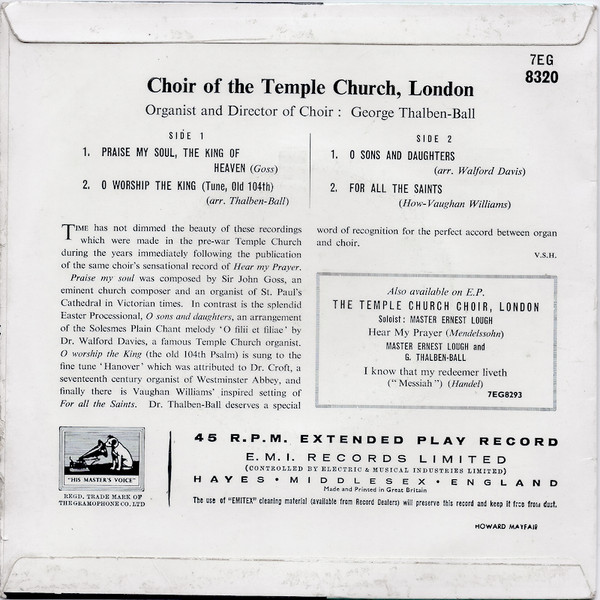Organist, Director of Choir – George Thalben-Ball |