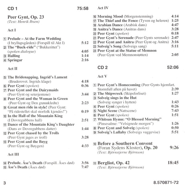 | 1-6 | Peer Gynt (Spoken) |