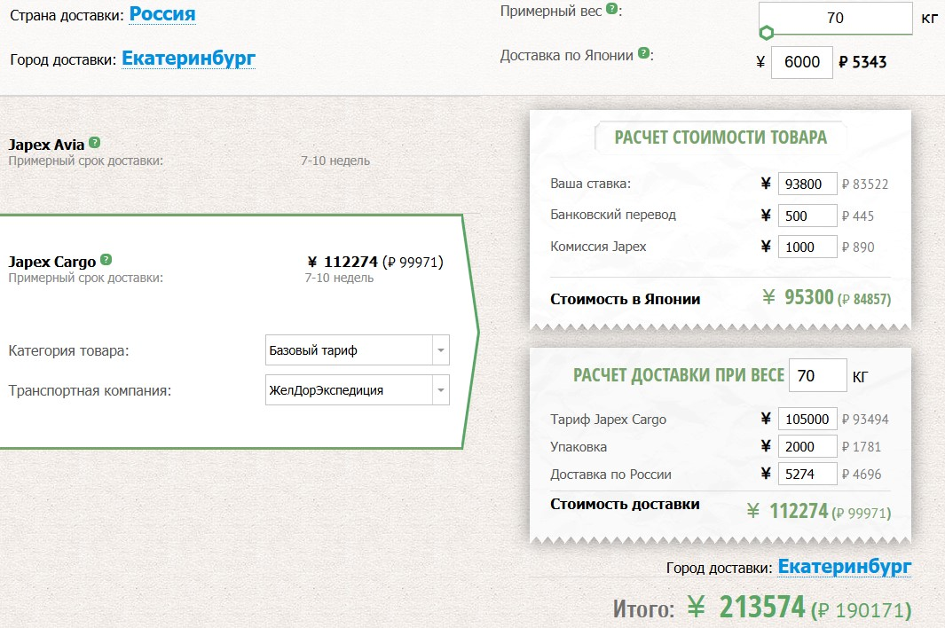 Расчет показывает, что доставка обойдется еще в 112 тысяч, что дает итоговую цену в России в 213 тысяч рублей.